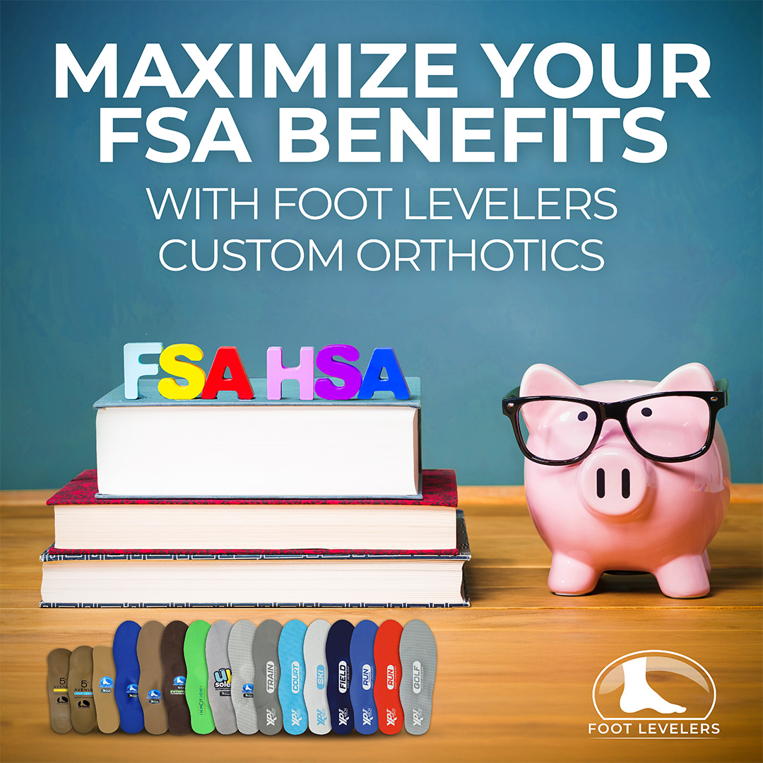 Don’t let your FSA dollars go to waste! Patients can use their FSA or HSA funds on Foot Levelers custom orthotics. This is an investment that can help your whole body feel better – supports better posture, balance, and whole-body wellness.